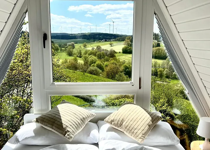 Design Chalet Vulkaneifel Vila está localizada a uma distância de 2.6 km de St. Maria Geburt, dando acesso a vários pontos turísticos próximos. A pousada inclui o parque de estacionamento e terraço com vista para a montanha.